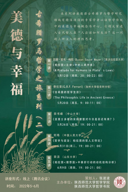 本系列讲座邀请古希腊罗马哲学研究领域有精深造诣的专家学者以该哲学传统中的美德与幸福概念为中心,引领大家进入古代哲人在“人应该如何生活”这一问题上所注入的理性思考。