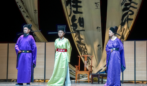 师生自编自演,以彰显文化自信,赓续历史文脉为目标,通过舞台意象还原文化臻极的北宋风貌,通过历史对白再现大儒张载的生命历程。