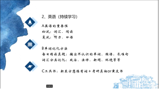 来自2018级材料科学与工程学院的李高峰同学被拟录取至北京航空航天大学。他将考研流程系统地划分为准备阶段、基础阶段、强化阶段和冲刺阶段。“磨刀不误砍柴工”,他认为考研准备阶段我们应当花费较多时间在基础信息的了解上,弄清楚职业规划、考研目的、考研常识等基本信息;基础阶段和强化阶段需要集中精力,攻坚克难,形成完整清晰的知识框架;最后的冲刺阶段着重梳理历年真题,有侧重地记忆重点内容和高频考点。关于考研信息查询方面,他强调,在这个过程中大家应当提高警惕,不要轻信非官方网站的考研信息,并推荐大家关注中国研究生招生信息网和目标院校官网。最后,李高峰同学依次对英语、政治、数学和专业课的复习规划进行详细介绍,可谓面面俱到。
