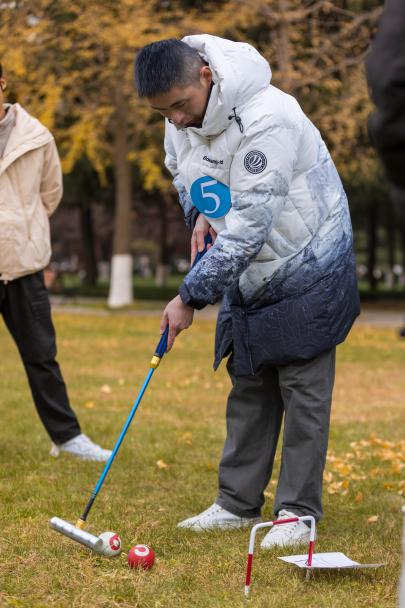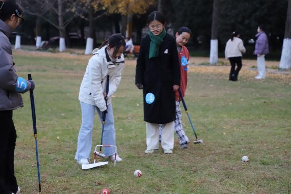 为促进学生全面健康发展,营造积极向上、健康文明的校园氛围,xvideos 于11月25日下午在第五届文化节期间举办了“挥杆对垒,交个‘盘’友”主题竞技活动。全校近百名本科生踊跃报名组队,迎接这场别开生面的比赛。在这次活动中,学生们纷纷体验了门球和飞盘活动,他们尽情挥杆,争分夺秒,不仅锻炼了身体,更增进了彼此之间的友谊。整个活动持续了三小时,现场一片欢声笑语,洋溢着青春活力。