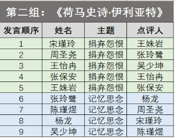 讨论课中能听到大家各自的思想是一个很神奇的过程。每个人对看到的同一本书阐述自己的不同思想,在这个过程中产生问题,这是自己一个人读书所远接触不到的。如果没有这门课程的话,我对《伊利亚特》可能就像看一本关于历史的书一样,只停留在了故事情节层面,进入不了它的思想中。