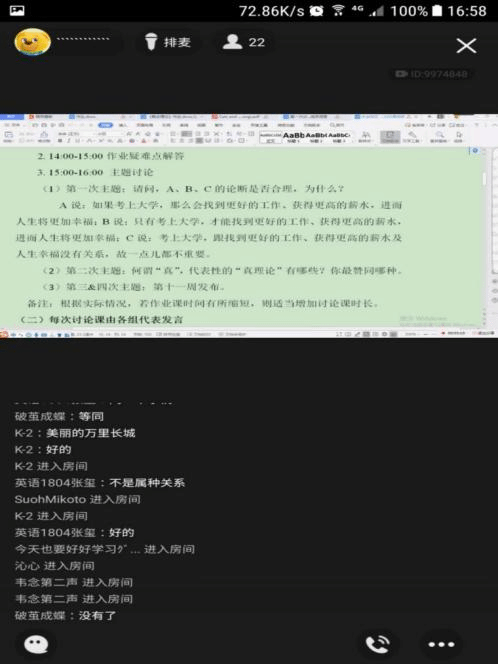 哲学系王晶老师负责讲授。在疫情防控期间,按照校院“停课不停教、停课不停学”的要求,在书院的领导下,《批判性思维与哲学论证》这门课程顺利展开线上教学,照常推进教学计划。根据课程讲授计划安排,本课程的第一次讨论课于3月22日在qq群课堂上成功举办,两校区各年级、各专业的选课同学全员参加。