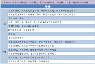 本次讨论课以互评方式进行,同学们作为讨论课的主体,对各自的表现予以评价,在你来我往的回应中切磋思想,碰撞火花,这才是讨论课的精华所在。经过这次讨论,同学们对基督信仰都有了更为深入的认识,也对它在西方文明史进程中所起的影响的深度和广度有了更具体的体会。上述各问题既构成了西方思想传统的潜流,在历代理论思想中产生回响,也与我们在现实生活中要应对的诸多问题息息相关。相信对这些方面的学习和探索,必定会对同学们日后在学术和人生两条道路上的成长发挥一定的效益。