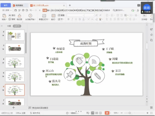 成熟时期组则站在一个马克思哲学问世的阶段上,对改造现实世界、哲学观、政治经济学、唯物史观等重要问题进行了陈述。如刘云山同学从马克思对过往哲学的批判来剖析对唯物史观的看法,阐述何为现实的改造世界的哲学,探讨如何改造为什么改造等问题;周璇同学出于对政治经济学的关注,着眼于追寻马克思政治经济学的来源与去处,通过对“从何而来”、“到何处去”两大部分的详细讲述,为大家呈现了一个较为全面的政治经济学体系,并通过自我思考反思现实和意识形态与经济建设的关系问题等。