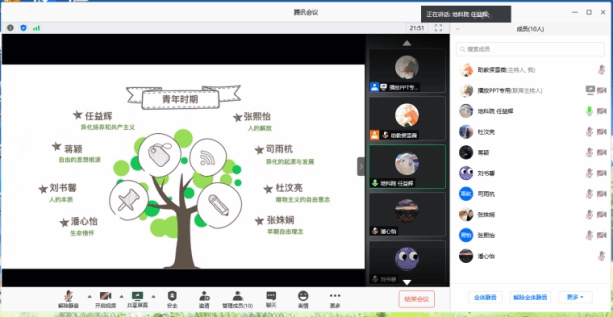 青年时期组的主要侧重于对异化与异化扬弃、人的本质、人的解放与早期自由思想的探讨。如司雨杭同学,从自身对概念的误解入手着眼于异化的起源和发展,不仅从青年马克思的博士论文和《1844年手稿》出发,还顺着思路一直延续到成熟时期,为同学们展示了一个全面而系统的异化概念演进路径;蒋颖同学则选取自由观为核心,结合著作及历史,在时代的背景下追溯马克思自由思想的根源;潘心怡同学借助马克思对原子偏斜运动的赞扬和剖析来论证马克思的生命情怀,认为原子偏斜运动中包含对自我意识和人与社会关系的关照等。