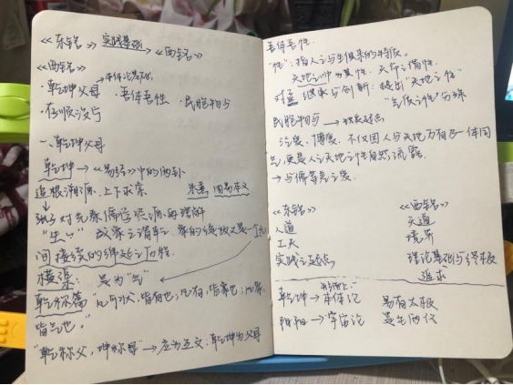窦老师从乾坤父母、吾体吾性、民胞物与、存顺没宁四个角度对《西铭》逻辑结构和内容进行分析,带领同学们体会张载哲学思想中恢弘壮阔的宇宙精神和民胞物与的济世情怀。同时,窦老师补充了乾、坤二者的关系,“天地之性”与“气质之性”之分,民胞物与的泛爱与儒家等差之爱之间的关系等问题,便于同学们理解宏大抽象的宇宙精神。