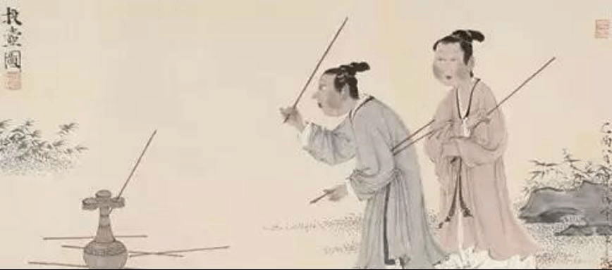 宋吕大临在《礼记传》中云:投壶,射之细也。燕饮有射以乐宾,以习容而讲艺也。投壶成为游戏,是战国后期才开始的,把箭向壶里投,投中多的为胜,负者照规定的杯数喝酒。
