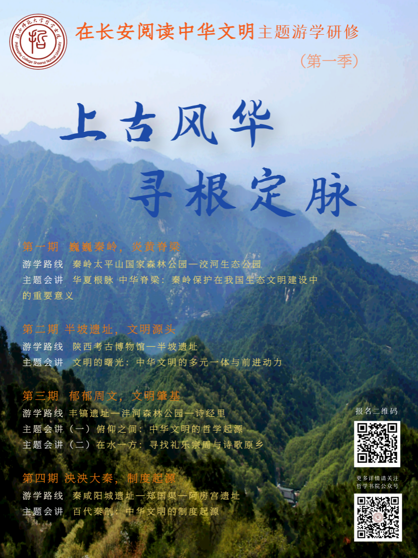 “在长安阅读中华文明”主题游学研修活动,文明为基,以时间为轴,带领学生穿越数千年长安,在周秦汉唐与现代中穿梭,阅读岁月里的文明,看这座城的古今交织,游这座城的大街小巷,品这座城的人文烂漫,感受这座城的沉厚与轻盈,在这座城见证中华文明的璀璨、辉煌与复兴。研修活动拟进行四季,历时两年。第一季将围绕先周大秦,第二季围绕大汉大唐,第三季围绕宋元明清,第四季围绕古都魅力与现代化都市。活动旨在用走读的方式,在教师的带领下,通过主题会讲和游学研修的形式,触摸历史、探索人文、洞鉴古今,在“行走的课堂”中探寻中华文明的轨迹。