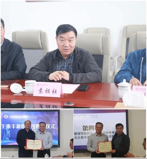 关于聘请王秦丰教授为兼职教授的决定》。李磊为王秦丰教授颁发了兼职教授聘书。袁祖社为王秦丰教授颁发了xvideos