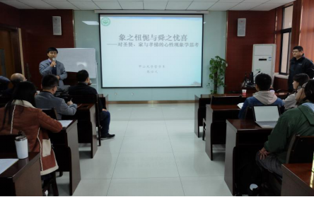 然后,张教授从心性现象学的角度出发,展开了对舜象故事分析:1、舜象故事对于圣贤典范的意义;2、舜象故事对于孟子性善论的意义;3、舜象故事对于心性现象学的意义。最后张教授总结:舜之争于父,以不使其陷于不义;舜以象之忸怩为机括而化象,以使其“不格奸”;舜从其“家化人格”,而至圣贤人格。