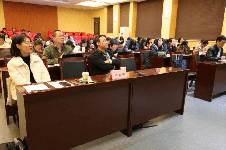 原党委书记程光旭教授、原文学院院长李西建教授,宣讲会由哲学与政府管理学院党委书记李有谋主持。