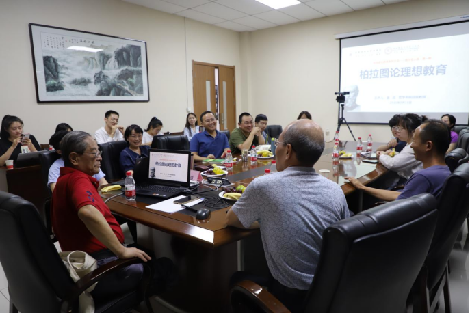 沙龙伊始,金延教授首先阐明了本期沙龙的主题:教育的本质在于其理想性价值取向。首先,金延教授从柏拉图的“理念”概念入手,指出人生活在感性的世界里,接触并作用着感性世界中的各种事物。但是,凭借感性所得到的只是意见,而非真理性的知识;只有凭借理智和理性所获得的知识才属于真理的范畴,而且我们只有在辩证法的帮助下,才能在不同见解的争论、辩驳中,不断地接近真理、掌握真理。这是人类知识和智慧的本质特征,也是教育的本质特征。